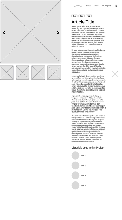Article Pages: Added details about materials used in each project and a feature for switching between images for an immersive experience.