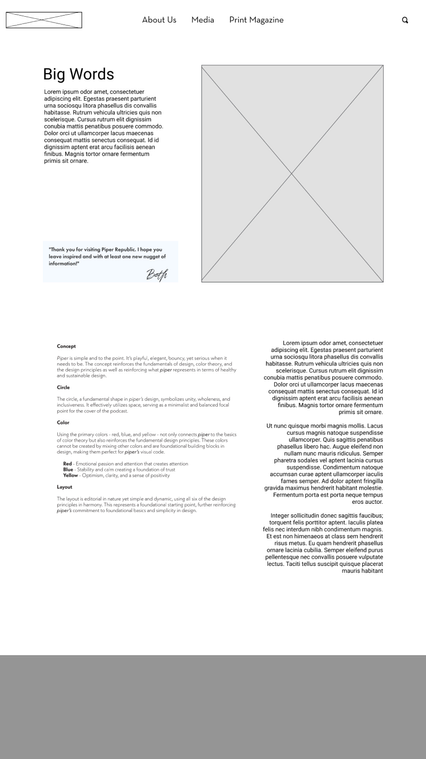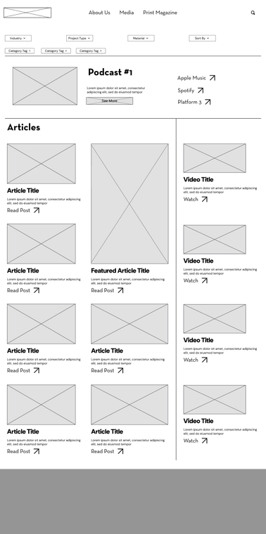 We restructured the navigation based on user insights, simplifying it into three primary tabs, which streamlined access to digital content and allowed users to filter media by their preferences. This revised sitemap also included a dedicated space for promoting Piper Republic’s print magazine.