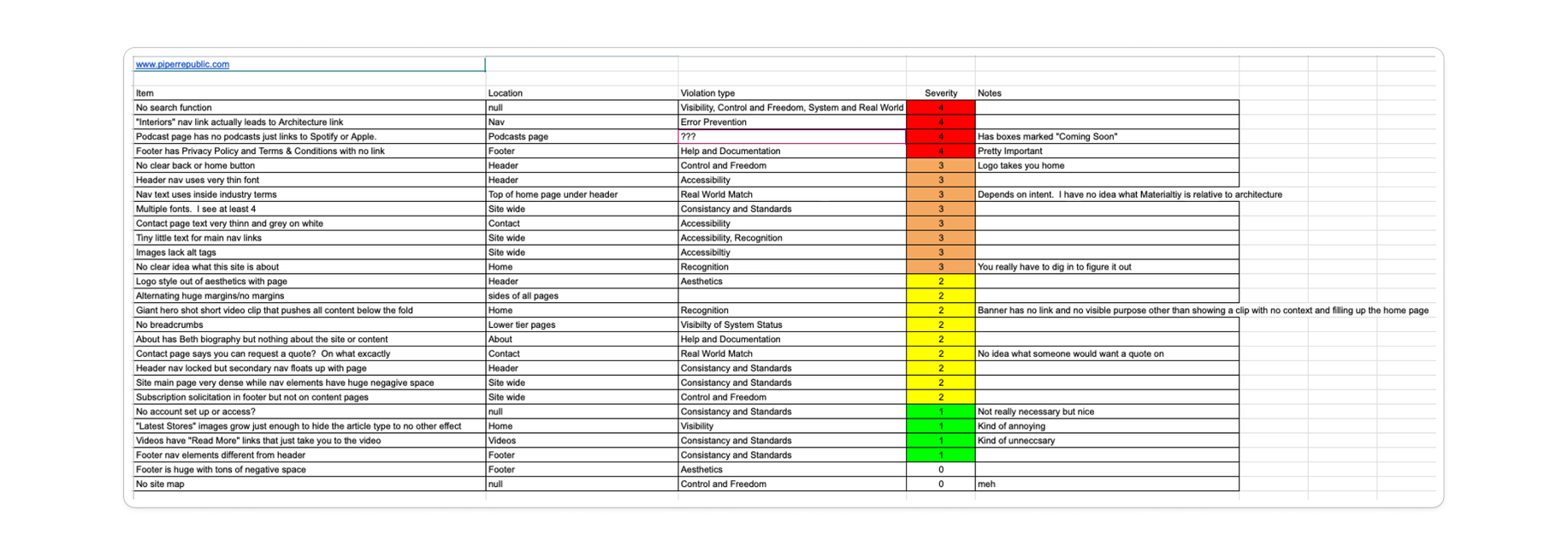 Our initial heuristic evaluation of the website revealed key areas for improvement: